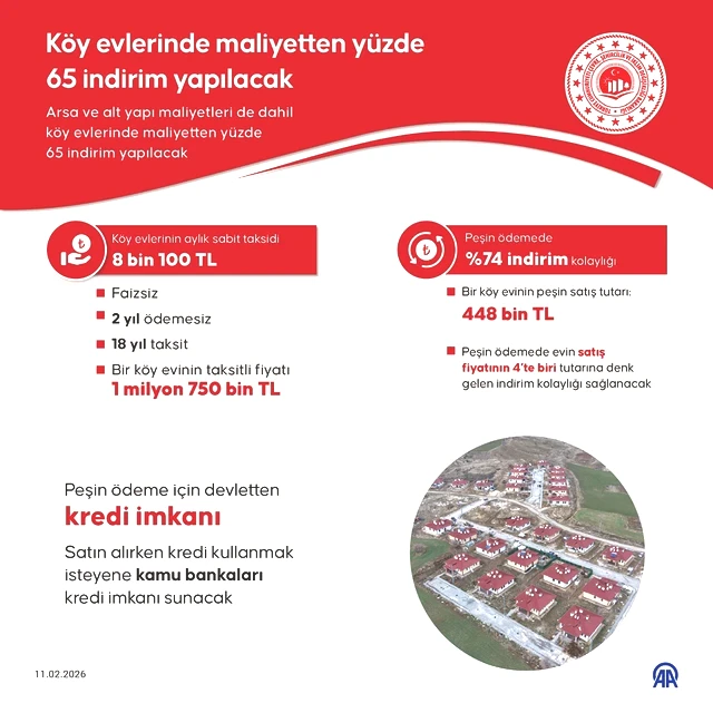 Bunun yanı sıra, bir köy evinin taksitli satış fiyatı 1 milyon 750 bin TL olacak ve aylık sabit taksit tutarı 8 bin 100 TL olarak uygulanacak.